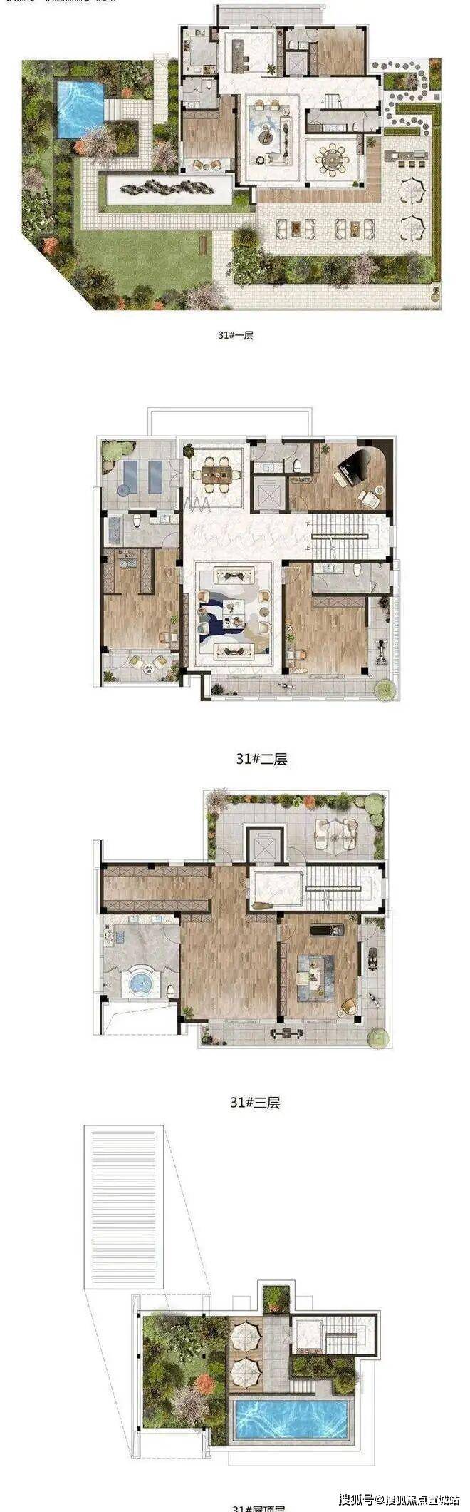 独栋商务别墅:建筑面积在 545 - 585 平方米之间,有 6 室 4 厅 6 卫、6 室 3 厅 7 卫等户型。均为地上三层或四层设计,无地下室,层高 4.49 米,拥有约 16.4 米的大开间,还有 5 室朝阳的格局。每栋都配备私属电梯,毛坯交付,还赠送 100 - 500 平方米私属花园,550 平方米产权的别墅实得面积可达约 750 平方米。