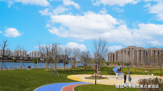 占位上:整个社区的北侧与东侧双面环水、西侧是商业,不止有繁华的城市街景,更有滨水风光,光这个社区的占位和天赋,就已经足够出色。