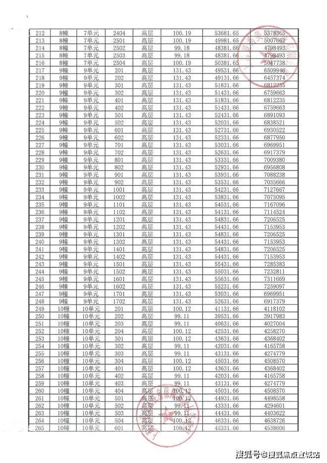 完整一房一价表如下: