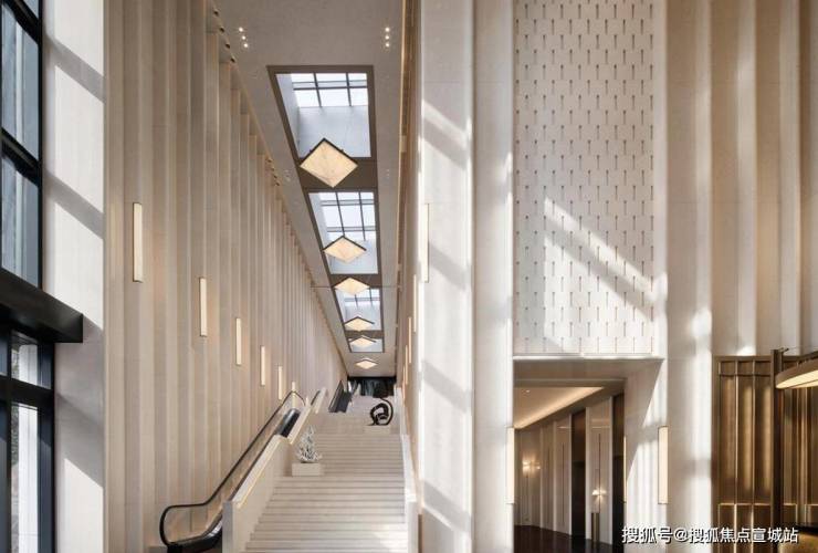 15 米高的穹顶下,用象牙大理石铺成的 “琴键走廊”,走在上面,估计跟走在艺术长廊里似的。还有那些发光的云石弧线,不只是用来照明的,更像是一个个光影雕塑,这设计真是花了心思。