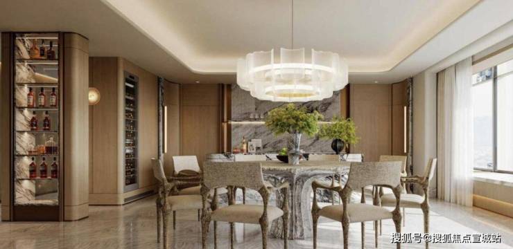 背后可是有 20 多个设计团队在忙活,还有 GS 和吴滨这样的大师加持。光是玄关就很有看头,贝母纹路配上木饰面,像一幅会动的画,一进门就很有仪式感。