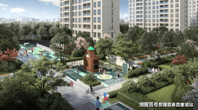 社区规划:采用新古典主义风格,外立面以仿石涂料为主。社区以十字中轴景观串联六重园林空间,配备休闲步道、景观小品、儿童游乐区等多功能区域。