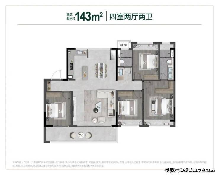 户型面积:有101㎡(三室两厅两卫)、111㎡(三室两厅两卫)和143㎡(四室两厅两卫)等户型。
