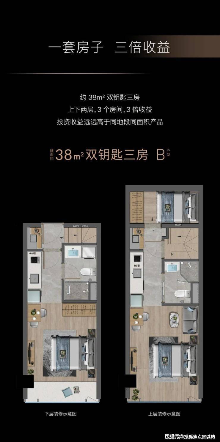 而约38-76㎡的产品构造上的应用,更将独特的几何审美诠释得淋漓尽致。在房产开发新政下,按最小单元分割的产品空间,可以更低总价实现买一层,送一层。周边高端产业、大型企业汇聚,也奠定了高租售市场的前景需求。