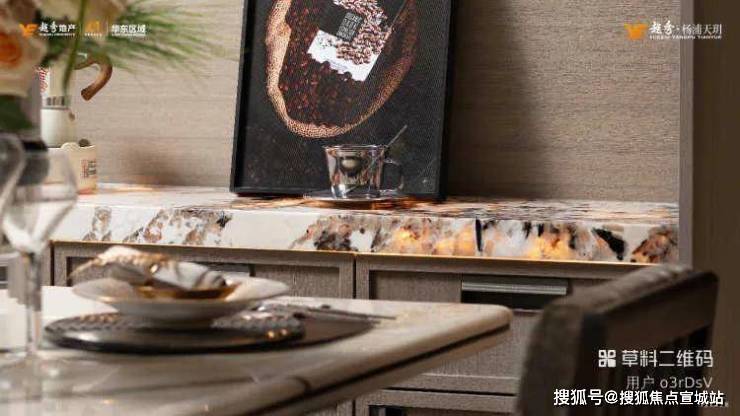 全能玄关·全能收纳玄关选用严选产地巴西的雪山飞狐奢石,对标外滩华尔道夫酒店宽境客厅·敞阔客厅应用健康系统,极致工艺(圆弧形吊顶搭配无主灯设计、定制地砖减少拼缝)
