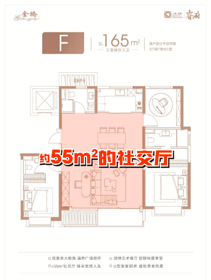 在浦东,建面约165㎡以上的产品相当稀缺,而约165㎡的3房就更是凤毛麟角了。
