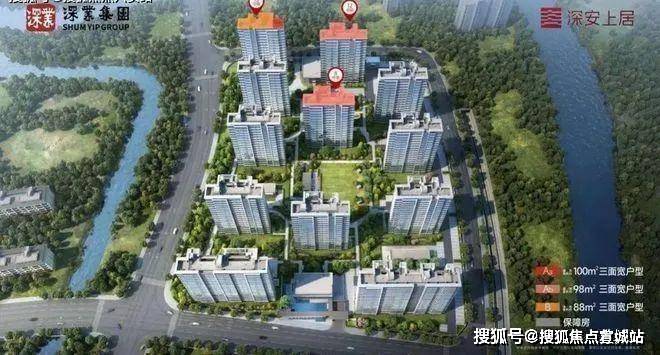 深业深安上居售楼处电话☎:400-882-8814【售楼热线】✔✔✔国企匠作 11号线200m 建面约88-98㎡ 臻装三房 ,深安上居规划有12幢现代美学风格的建筑,玻璃幕墙搭配米白色和深灰色材质涂装,简约线条分割完善挺拔向上的平面美学。以“亲近自然、新鲜活力” 的社区场景,营造“一轴一心三主题”全龄共享的园林空间,让业主沉浸式体验更具松弛感的邻里生活。