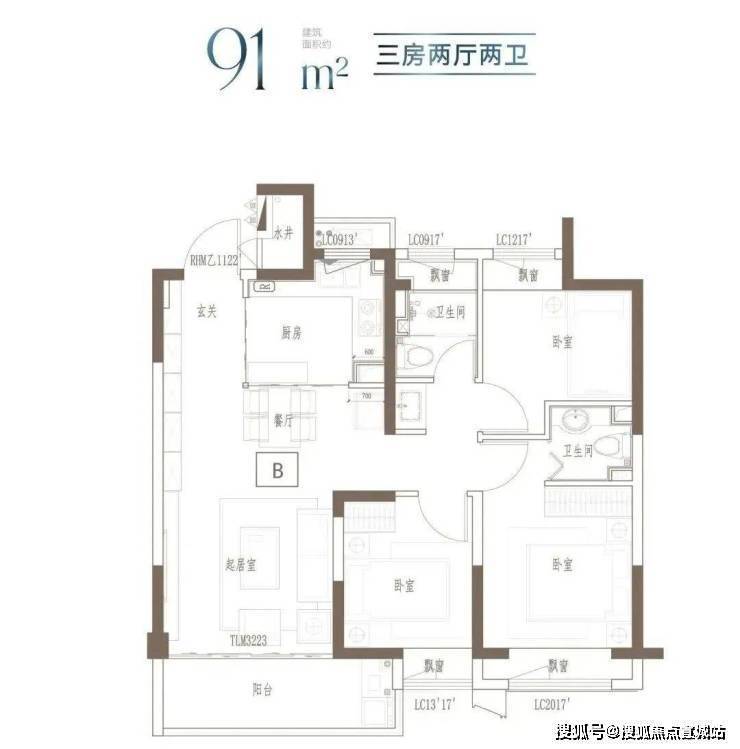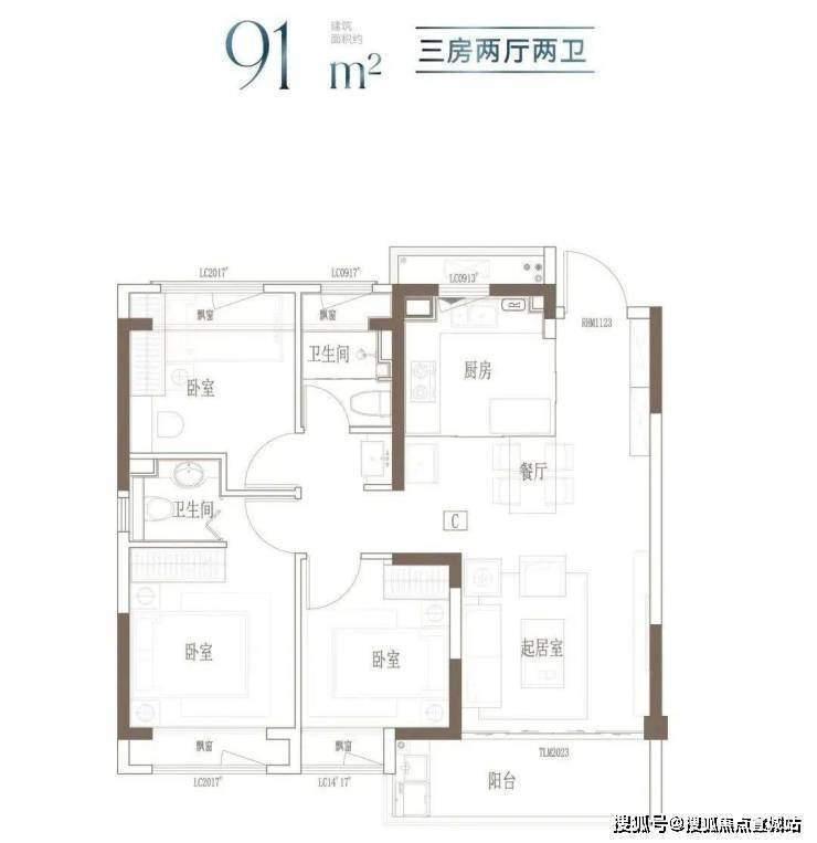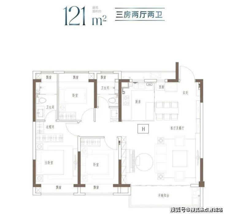 建面约91㎡-121㎡3房2厅2卫;这几个户型都是3房的设计,满足想一步到位的购房者。3开间朝南+客餐厅连通阳台+全卧室飘窗,以及套房式主卧设计+2卫,即使是三代同堂,也能让生活从容。