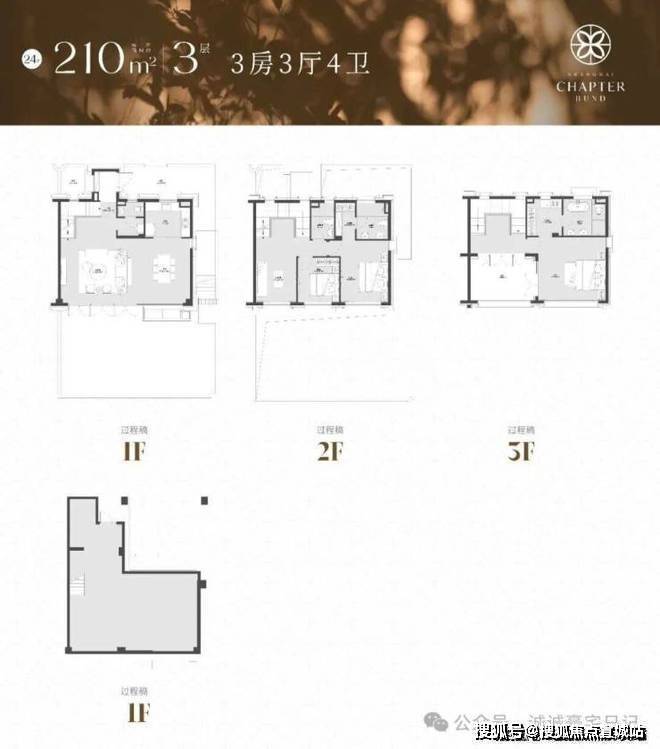 建筑面积:约 175-280㎡,分为上叠、中叠、下叠三种形态。