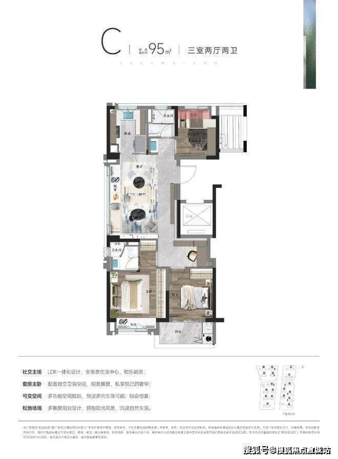 一体化的定制空间:将精致的生活理念,贯穿于建筑、景观、室内等各个组成部分。户型空间的一体化定制,以厅厨为核心的公共空间强调空间的可塑性,呈现更多愉悦、舒适、优雅的生活真意。