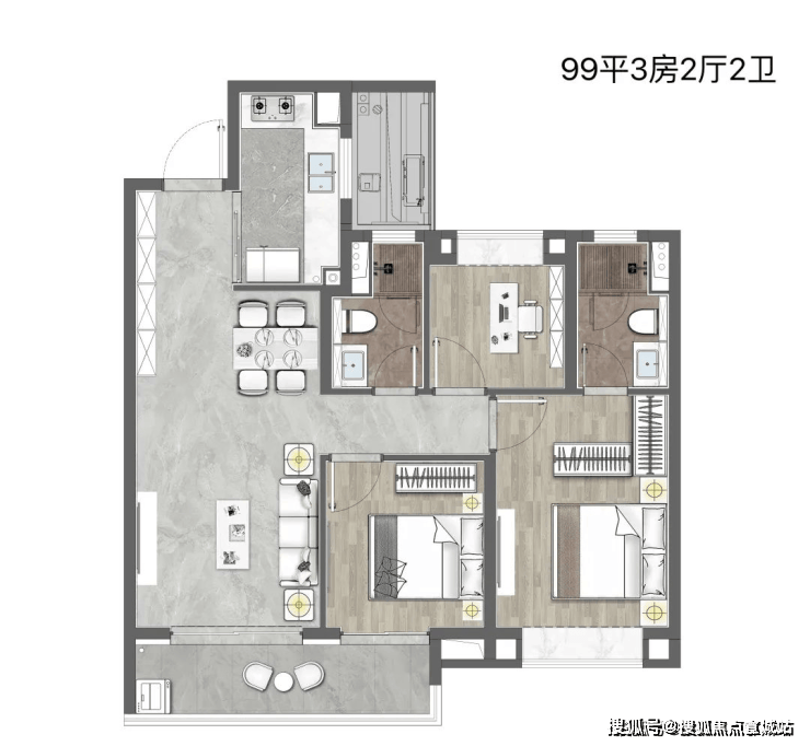 户型实用:覆盖 99-142㎡三至四房,适配刚需到改善需求,大横厅、主卧套房等设计贴合市场潮流