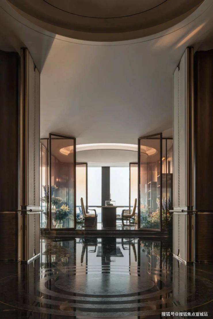 这样的「王者之厅」,辅以手工贴画的金箔木饰面,还有鱼肚白、芬迪白、范思哲黑等等罕见奢石。还有无论是400方户型还是800方户型,都有CEO派对方厅,尤为阔气。你可以理解为,七星潮鸣的每一层空间,都像是一座小型奢华酒店,房屋内外浑然一体,精致奢华。