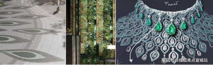 祖母绿切面工艺铺装、蓝宝石水景、琥珀质感格栅……宝石灵感贯穿景观细节,香槟金“飘带”外立面与蝴蝶状曲线建筑群,在晨昏光影中与黄浦江波光共舞。