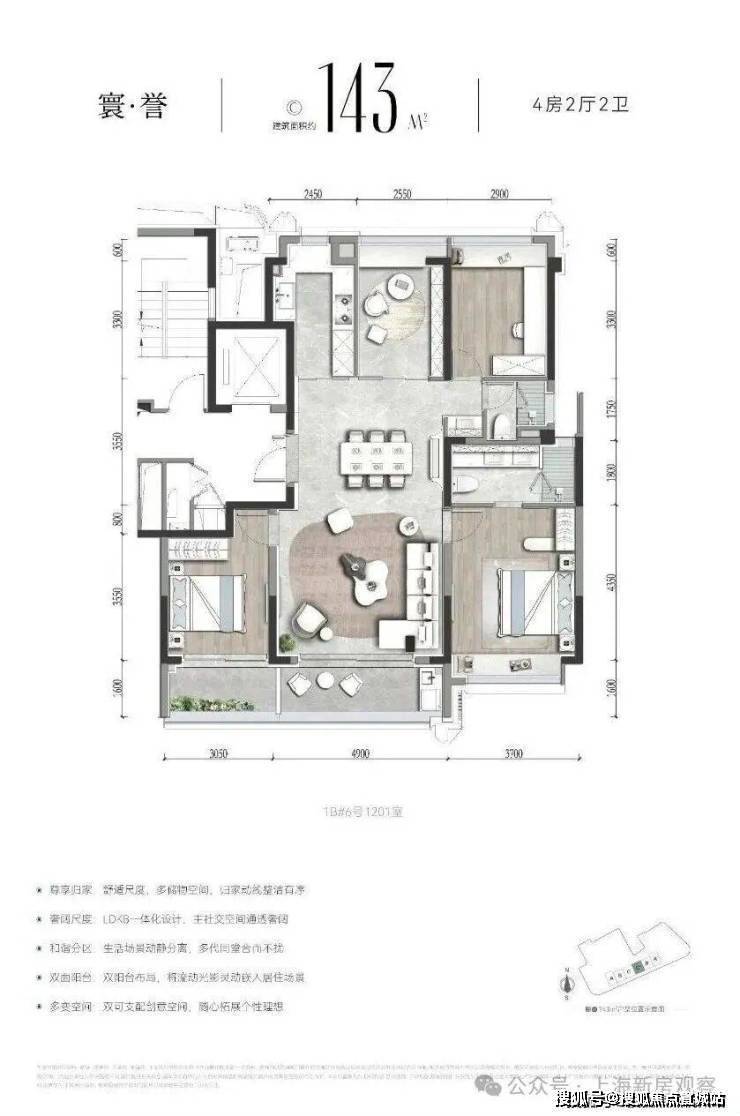 建面约143㎡4房样板间展示如下