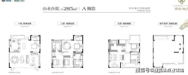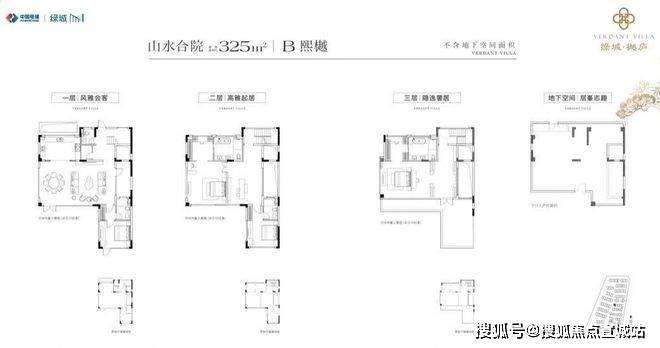户型配置:建面约285-340㎡山水合院,建面约200-305㎡诗境叠墅