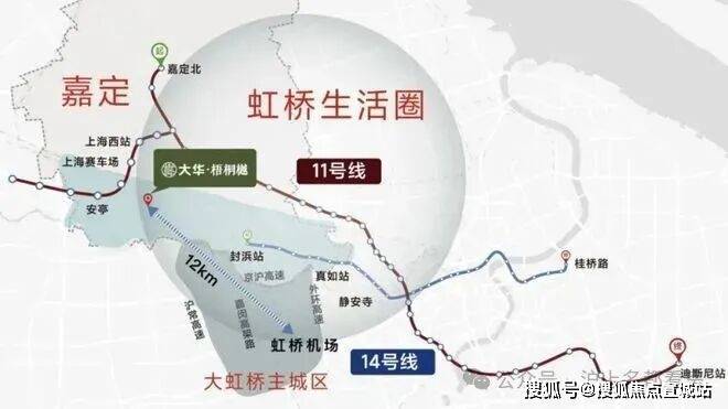 「大华梧桐樾|越界」,位于嘉定的核芯区位,与虹桥主城区核心距离也只有5km!