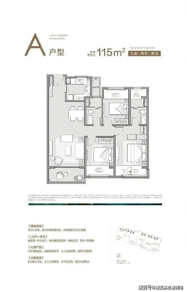 建面约115㎡三房两厅两卫