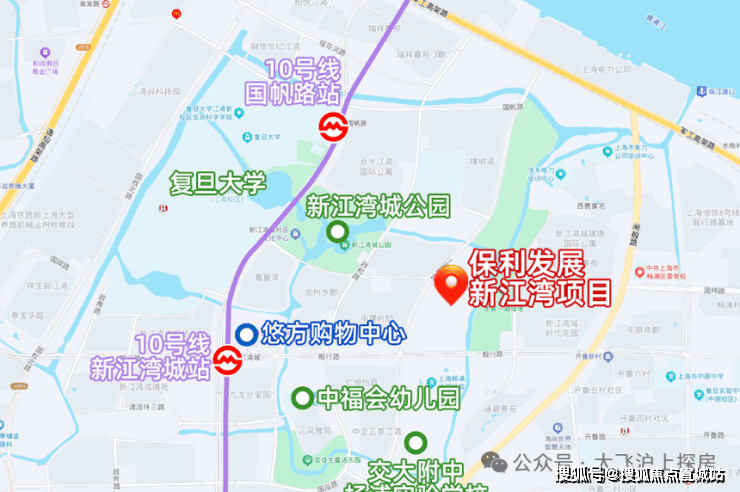 项目直线距离10号线新江湾城站约1.1公里,无需换乘可直达五角场、南京东路、豫园等各大商圈。