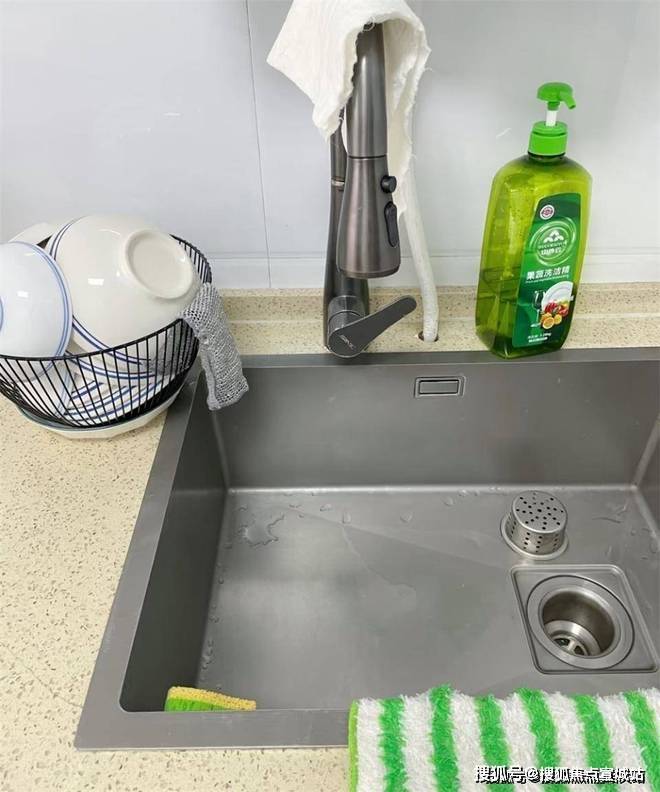 很多人家里水槽周围,都会乱放很多东西,但她家的水槽,却只放了洗洁精和一个沥水篮,每天洗完碗以后,会把水池周围的水渍擦干净,让水槽长久保持干爽的状态。
