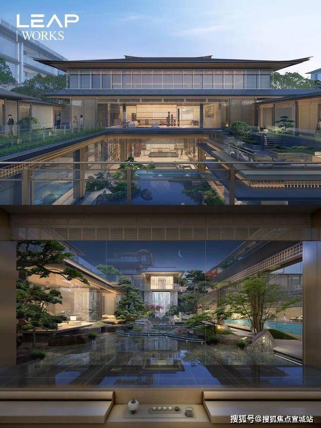 漫步于光影交织的幽静庭院,您将踏入一方充满诗意的天地。潺潺流水映照着婆娑树影,挺拔树姿为这片空间注入向上的生机,纵向延伸出无限的视觉张力。这座下沉庭院,不仅拉近了建筑与自然的情感共鸣,更使室内与景观紧密相连、和谐相融。每一扇窗户,都犹如框中的一幅生动山水画。
