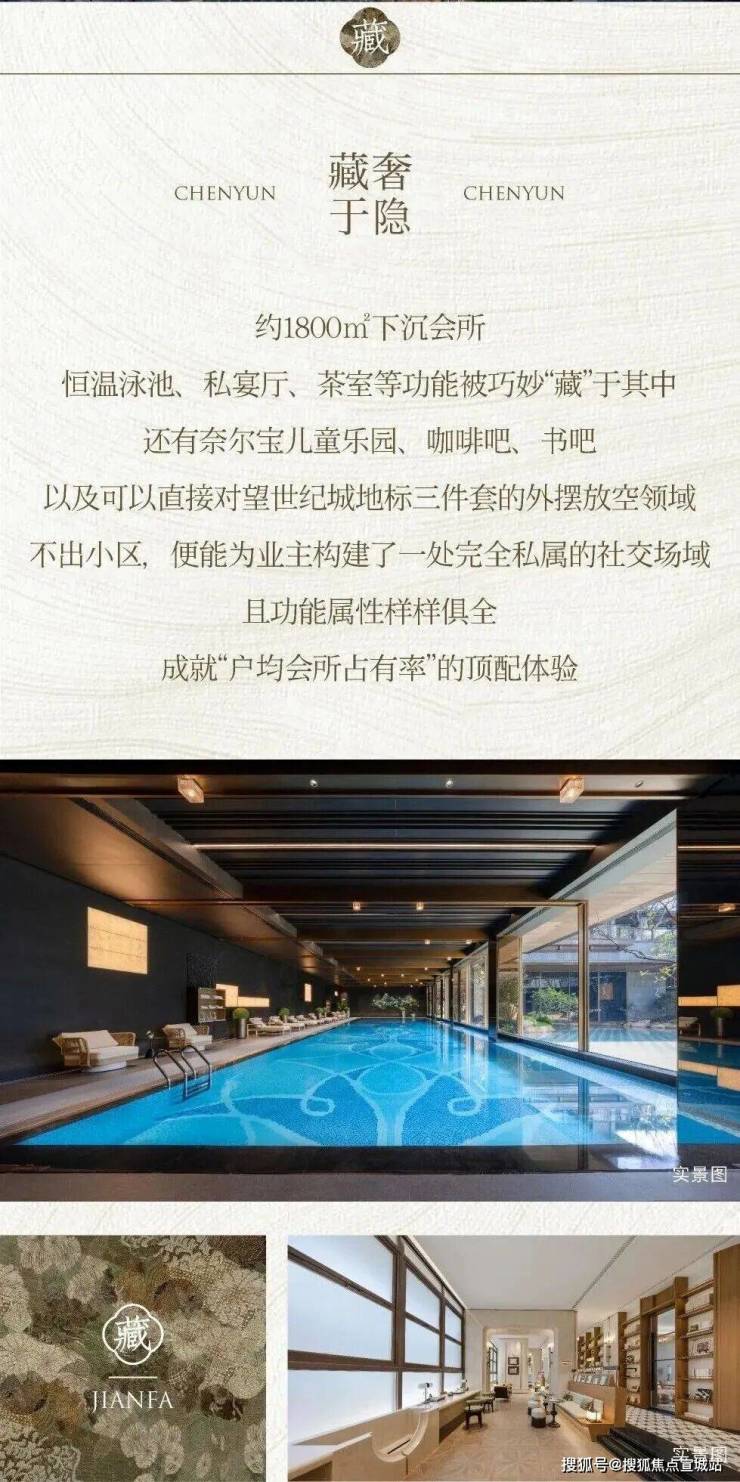 首先从小区品质来看,宸云并不是那种混合刚需与改善的综合盘,而是纯粹为改善群体定制。164户的体量,配上约1800方的下沉式会所,恒温泳池、私宴厅、健身房、书吧等功能一应俱全,真正实现了“少数人的圈层生活”。