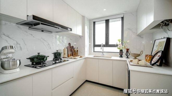 ①看功能区,户型南北通透、三开间朝南,南向宽厅连接宽景阳台,以及U型厨房,整体面宽来到了约3.8米,