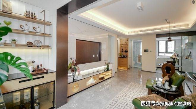 ②走进地面一层,居住需求与社交需求在此融合。餐客厅一体阔绰空间设计,约4.05米的南向面宽连接南向阳台,将居所与前庭花园风景巧妙相连,每天推开窗,就能邂逅满院芬芳。