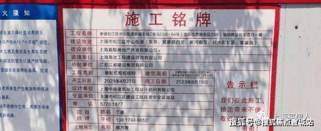 这幅地块在今年的2月18日已经开始奠基,据现场施工铭牌显示:项目于2021年4月开工,预计2023年8月竣工。