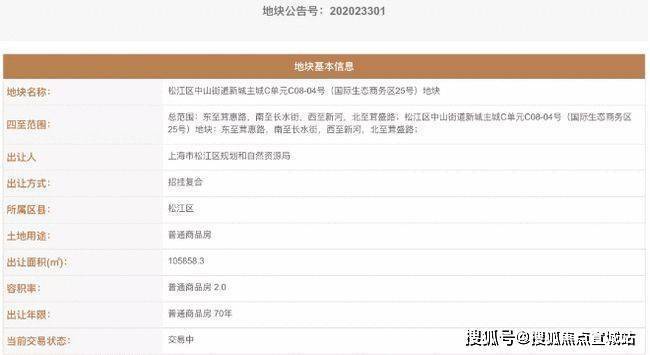 去年12月18日,松江区中山街道新城主城C单元C08-04号(国际生态商务区25号)地块被金地集团拿下,溢价15.4%,楼板价29426元/㎡!