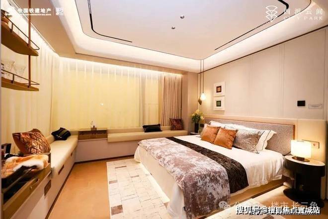 主卧套房设计同样让人惊喜:南向超大景观飘窗引景入室,放完标准双人床后,北侧还能打造整面衣柜;全明主卫功能分区清晰,定制淋浴房保障干湿分离,镜柜内置美妆冰箱,细节处尽显品质感。