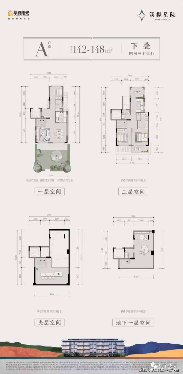 建面约142~148㎡下叠:地下室多元空间营造/餐客连厅/奢适双卧/南向阔景阳台