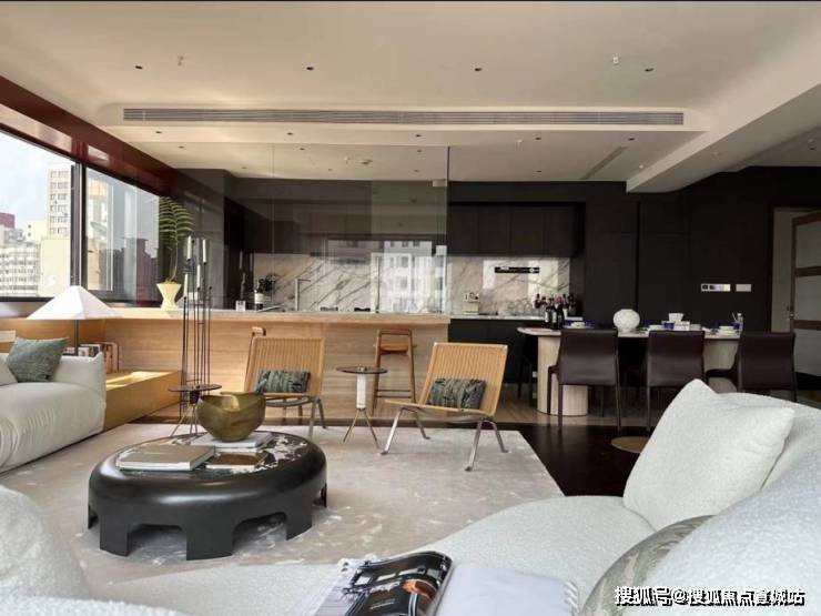 餐客厅:有四个区域,吧台区、餐厅区、两个沙发区域(会客厅)。