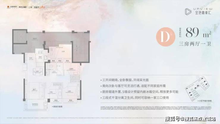 产品类型:建筑面积约89-102㎡精致高层、建筑面积约160㎡稀缺叠加
