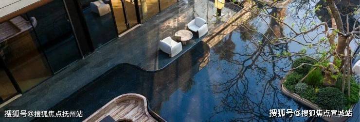 主人口从雅典One&Only度假酒店汲取灵感,打磨温润弧线,赋予舒缓、松弛、艺术的归家氛围;入户大门以浅色石材、波浪线条,搭配暗金色金属面,演绎金镶玉”的新奢门庭。在棕榈树阵、下沉式庭院、镜面池畔卡座的对景中,成为未来沉浸自然的惬意之地。温柔闲适的落日廊吧,犹如身处海岛之畔,感受蓝调时刻的优雅情调。