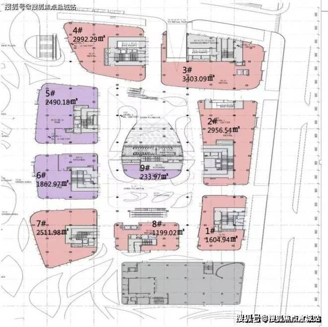 总部云端办公41层(3至43层)约9.86万平方米,单层约2500-2800平方米。