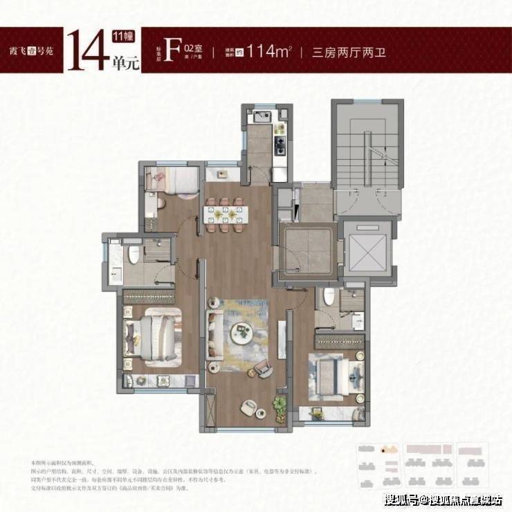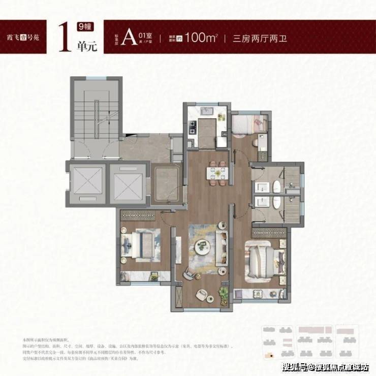 户型区间:主力户型建面约 100-188㎡,涵盖三房到四房,全部一梯两户设计,南北通透,独立电梯厅私密入户。