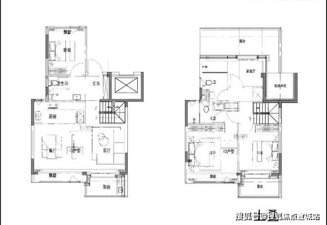 叠墅户型图如下:(过程稿,以开发商发布为准)
