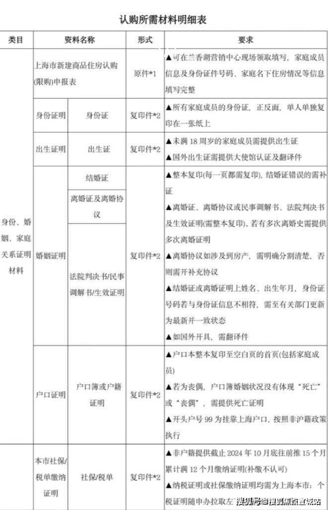 认筹准备材料: