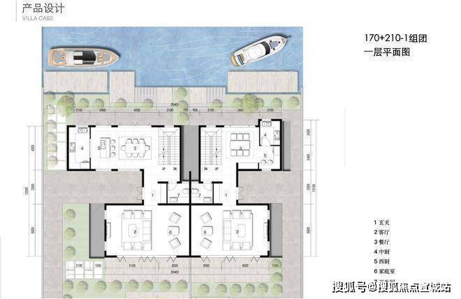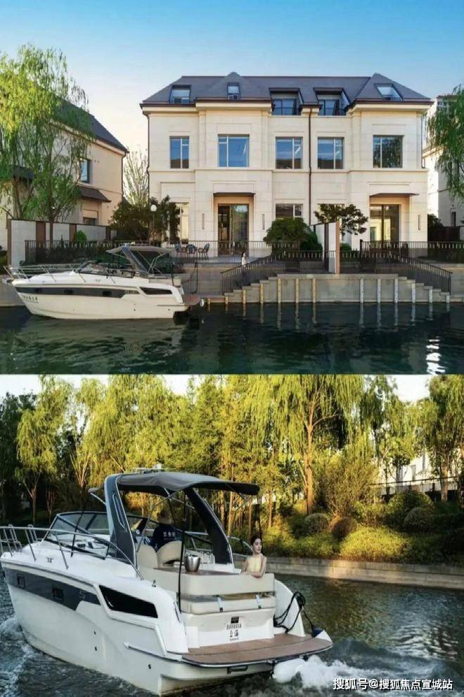 每一排别墅前都有一条渠道,引入水系,可!以!停!游!艇!