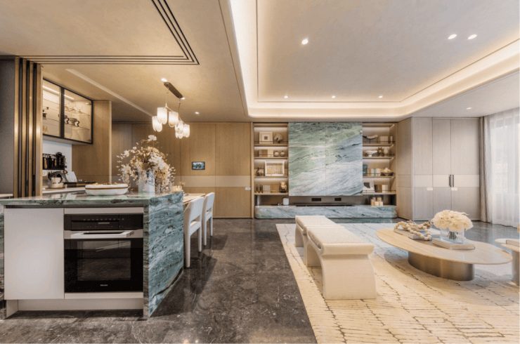 参观中建·玖上琅宸的样板间之前,就对它奢华的用材有所耳闻,真正进入样板间之后,还是没忍住感慨中建玖合不愧是造世界级奢华地标的高手,造起样板间也格外得心应手。