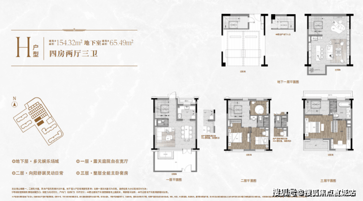 宴会、待客、健身、娱乐都有各自阵地!那在「興華里」,以建面约154㎡H户型为例: