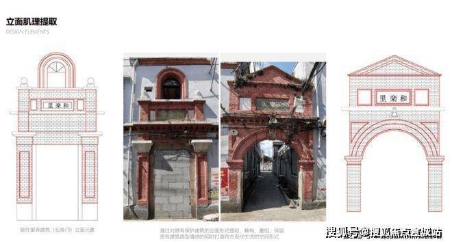 由于项目“历史风貌街区”的特殊属性,区域将沿袭“总弄-支弄”的里弄风貌肌理,现有的历史建筑实施“留改拆”方式,可采用规划保留或拆除复建方式予以更新,建筑立面不宜改变,保留历史特色构建。