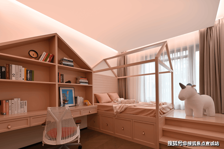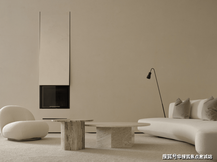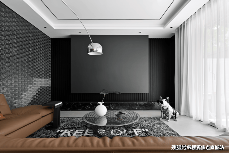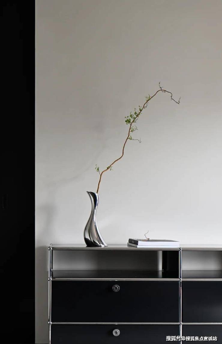 空间是光影的容器,自然光穿透白色的纱帘给会客厅加了一层摩登的滤镜。两侧纱帘光影通透,暗香浮动,几丝波影乍如烟。一处吧台,临烟火,酌清欢。烟火清欢,一半一半。