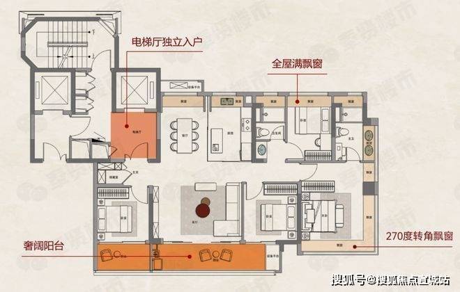 边户独有的 270°转角飘窗全景主卧套房,更是将稀缺景观资源私有化。客餐厅阳台一体化设计,让家庭互动畅通无阻。室内采用一线品牌精装交付,注重细节品质。