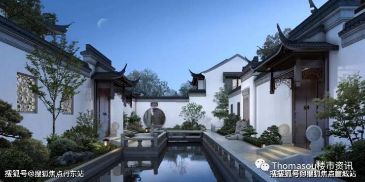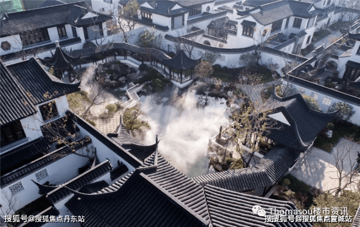 同时,建筑采用宋代宫殿,建筑出檐宽广,檐下增加斗拱、镂空雕花、甘蔗脊、阑额等元素,约2/3宅园设置入户连廊,为全国之最,雅贵造极。
