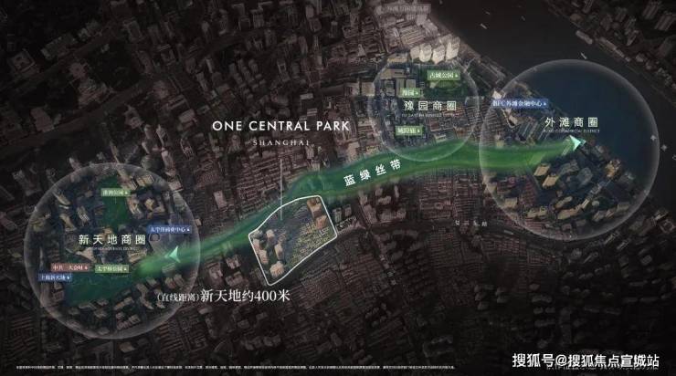 距离新天地直线距离约400米,作为蓝绿丝带规划上的关键节点,随着大新天地东进南拓战略逐步实施,通过水景、绿地和公共空间,串联新天地、豫园、外滩三大世界级商业版图。