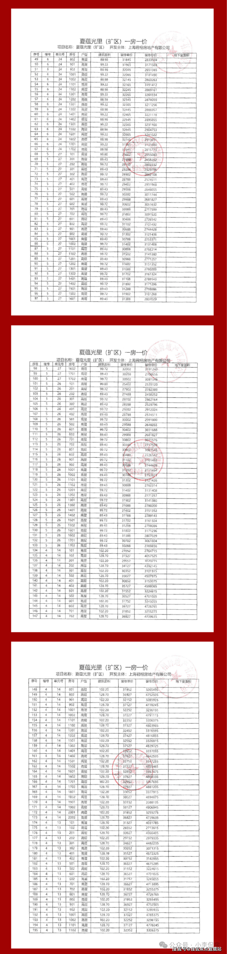 项目一房一价表