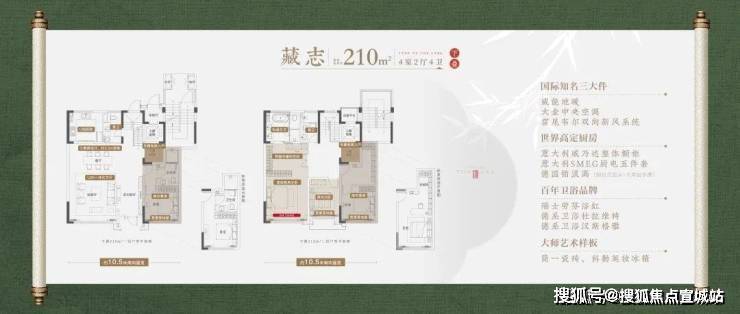 约210-240㎡奢装宽墅,四层叠墅规制,太湖新城立序之作,媲美大平层的3.5个面宽设计,为苏州人物开拓一片,可妥放优雅与闲逸的自在天地。