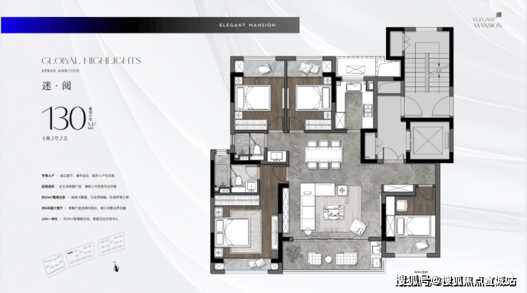 130㎡👇👇正四房、南北通透,大横厅设计,独立电梯私密入户