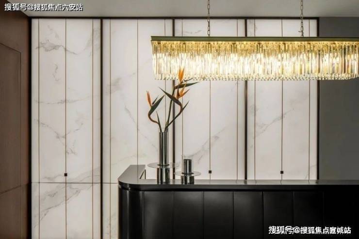 精装标准对标顶豪项目,选用德国嘉格纳厨电、德系卫浴等一线品牌。墙面采用皮革硬包与微曲木饰面,结合钛金板与石材,细节处尽显宝格丽式奢华质感。